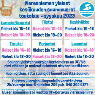 Vieresniemen yleiset talvikauden saunavuorot lokakuu 2025 - huhtikuu 2026